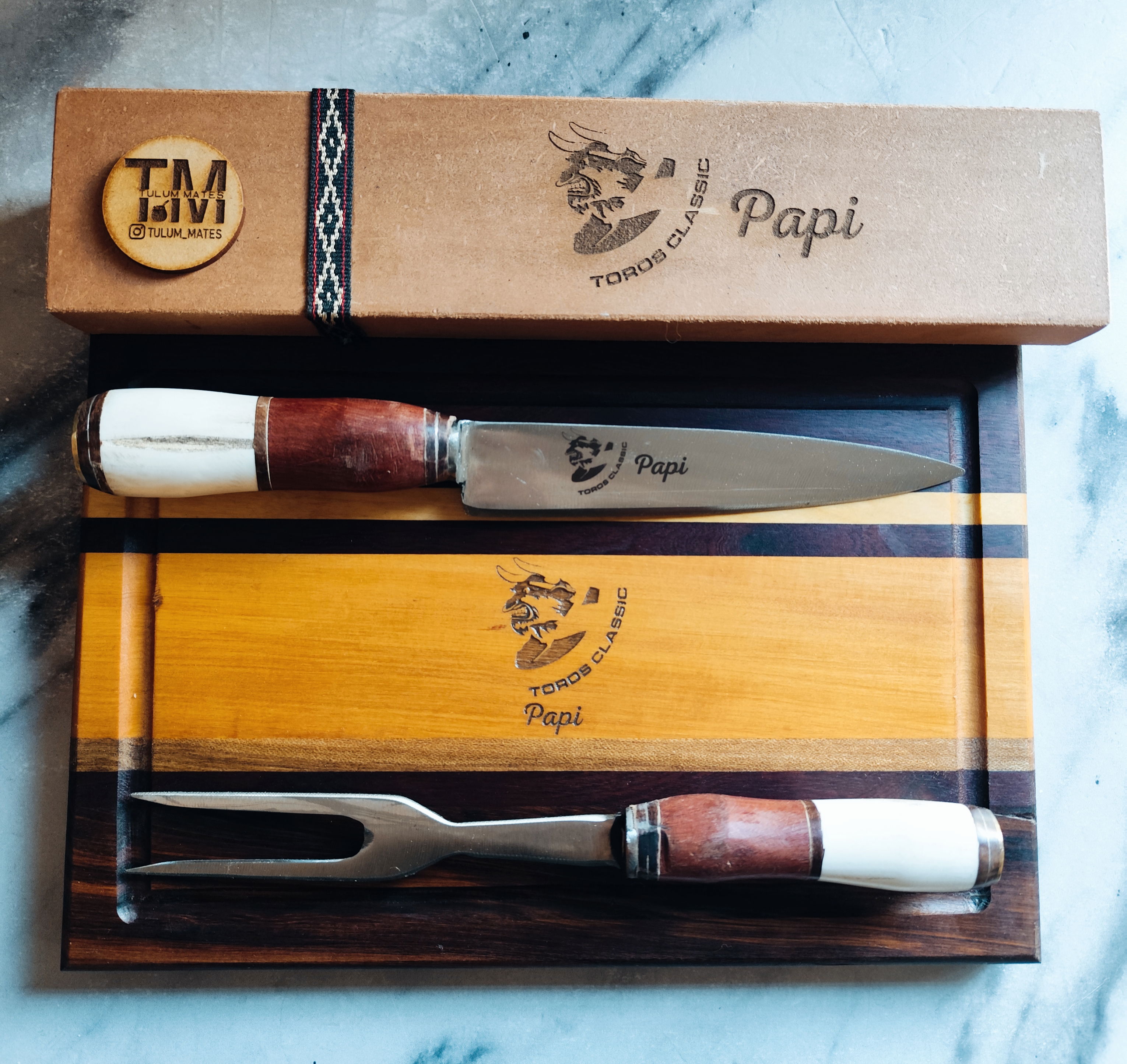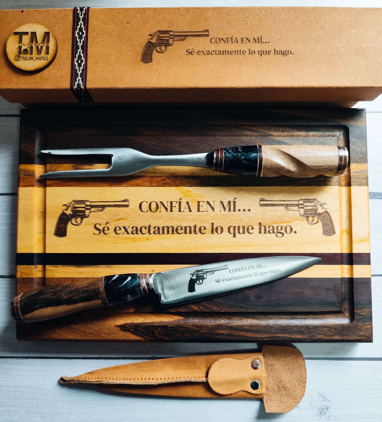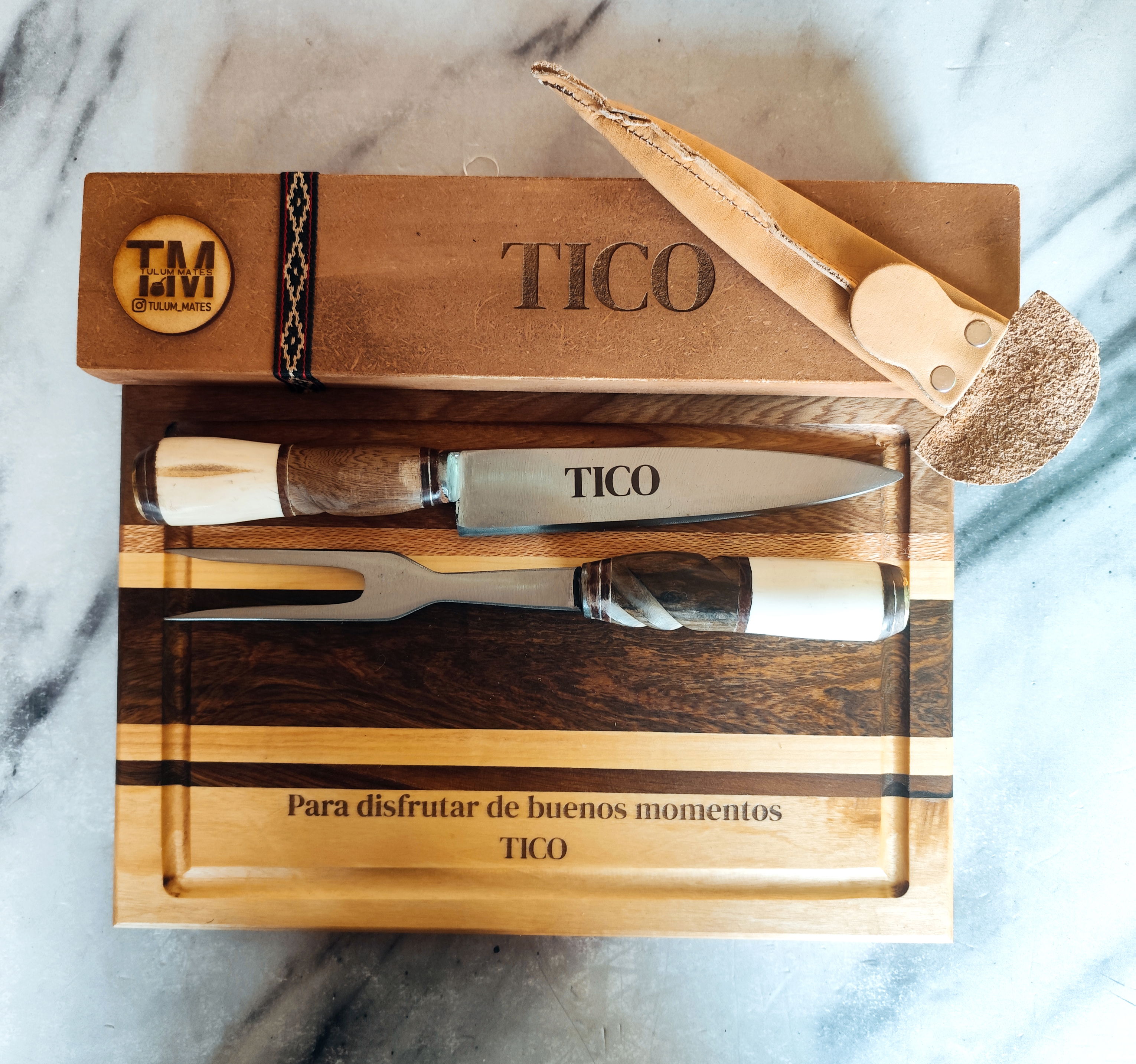 Combo Tabla 20x30 cm con cubiertos Carbono Premium Personalizado